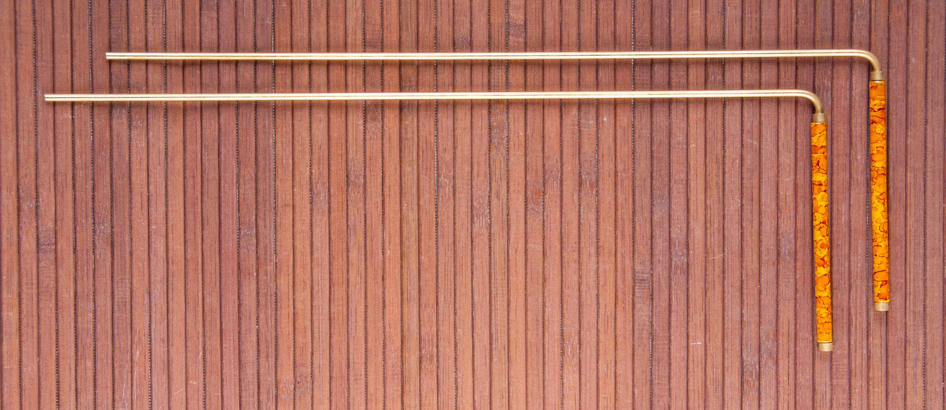 34 cm - Baguettes de sourcier / radiesthésie / Hartmann en laiton avec poignées en cuivre