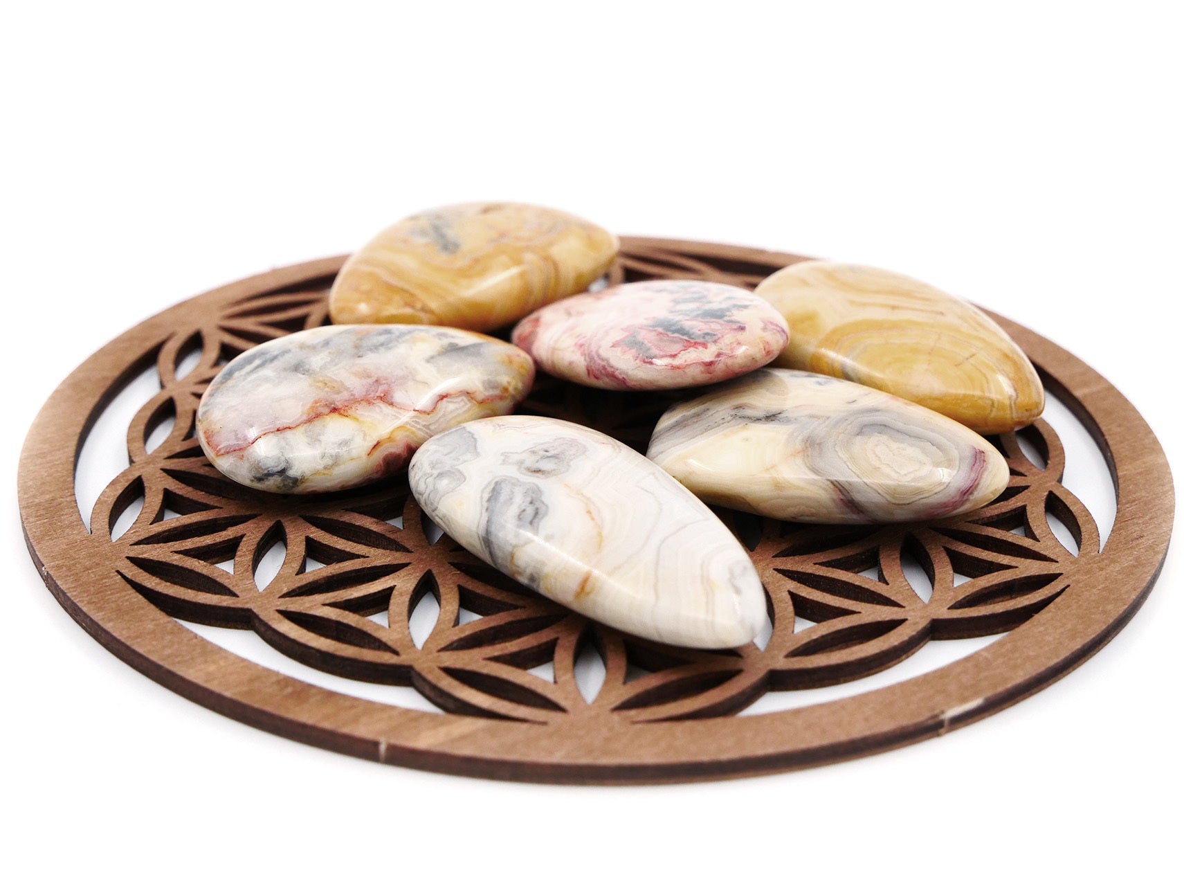 L'agate Crazy Lace est une pierre dynamique et polyvalente qui apporte flexibilité et dynamisme dans les pensées et les actions. Elle stimule l'échange de liquides tissulaires, aidant ainsi à équilibrer le corps, tout en étant particulièrement bénéfique en cas d'infections, de piqûres d'insectes, de varices et d'hémorroïdes. Cette pierre infuse une joie de vivre contagieuse et intensifie les expériences de la vie, favorisant la curiosité et l'exploration de nouvelles aventures. Elle aide à briser la routine des habitudes mentales, permettant de développer de nouvelles perspectives et approches. Sur le plan émotionnel, l'agate Crazy Lace renforce la confiance en soi et encourage l'acceptation de soi, offrant un soutien et un confort en situations émotionnelles difficiles. Physiquement, elle améliore l'endurance et la vitalité générale, apportant un soulagement efficace et durable pour divers maux.