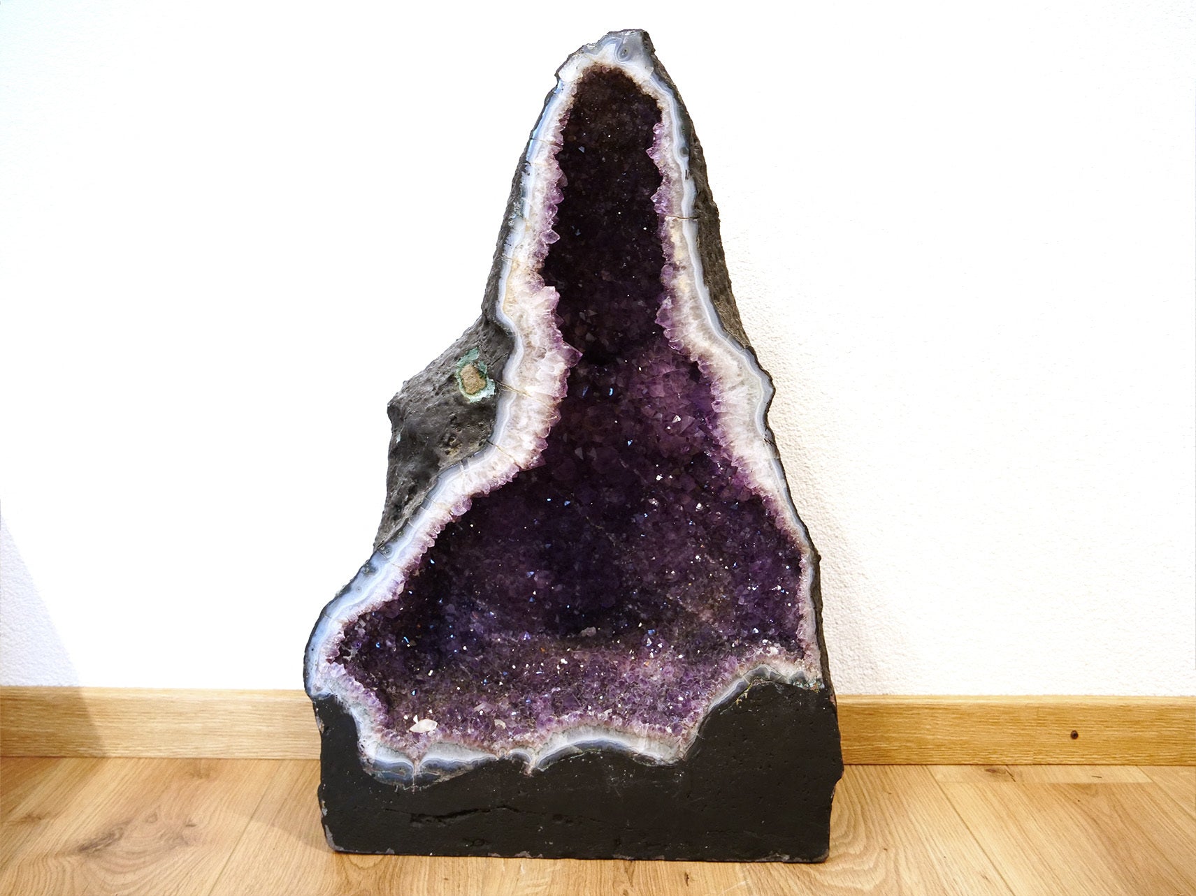Grande géode d'améthyste, idéale pour décorer un salon, un cabinet ou un bureau.