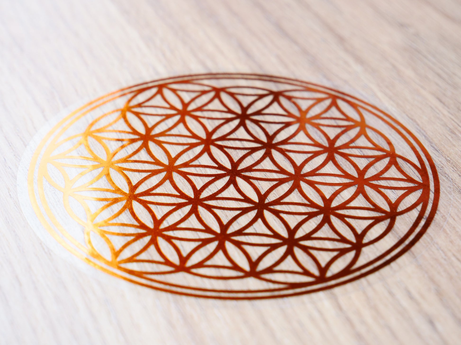 Autocollant fleur de vie cuivré avec fond transparent. Pour coller sur une fenêtre, un meuble, ou ailleurs !ø 8,5cm