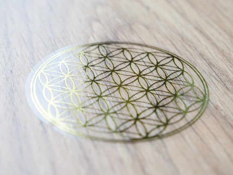 Autocollant fleur de vie doré avec fond transparent. Pour coller sur une fenêtre, un meuble, ou ailleurs !ø 5cm