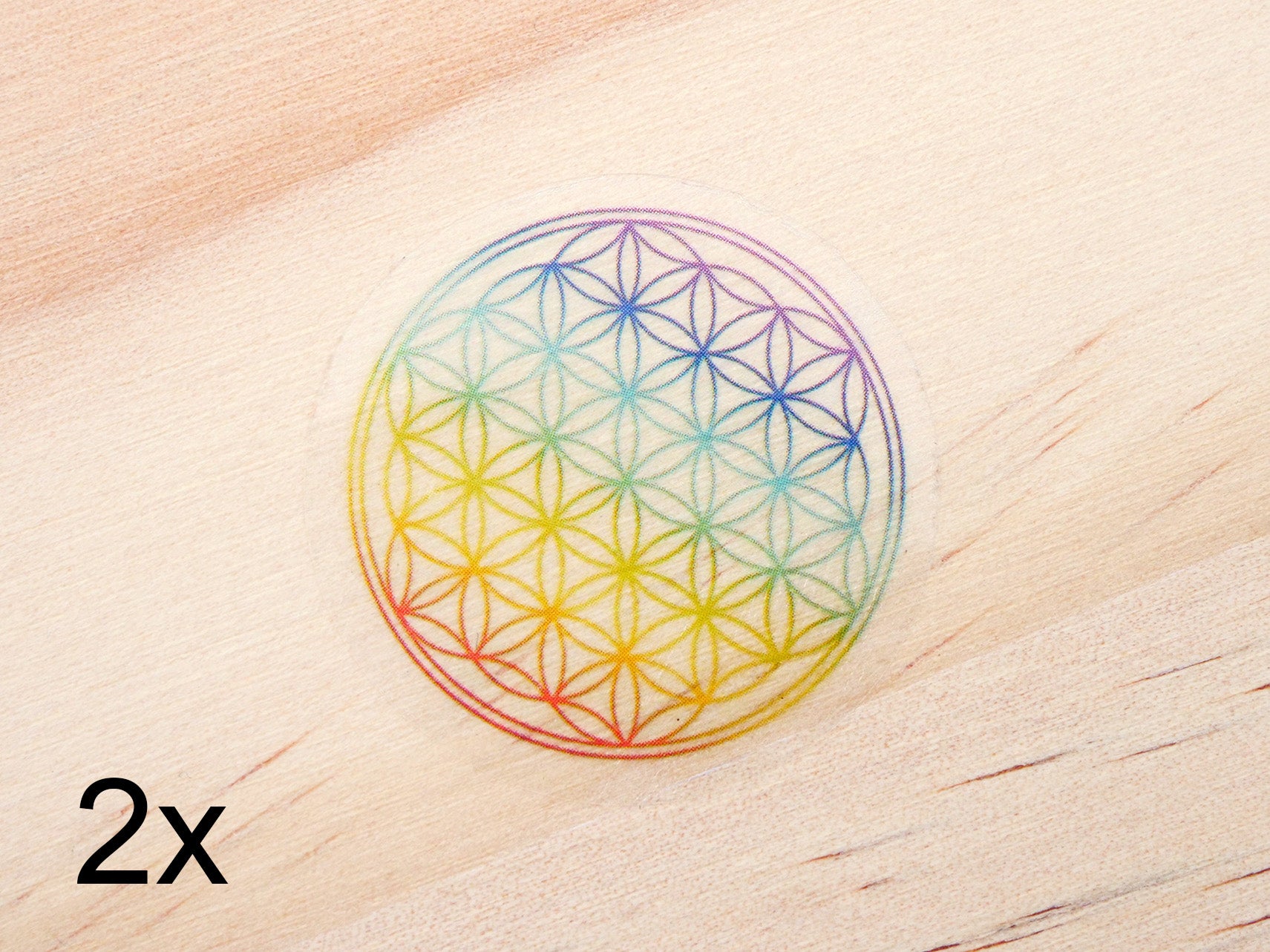 Deux autocollants fleur de vie arc-en-ciel avec fond transparent. Pour coller sur un téléphone ou sur l'objet de votre choix !2x ø 2,6 cm