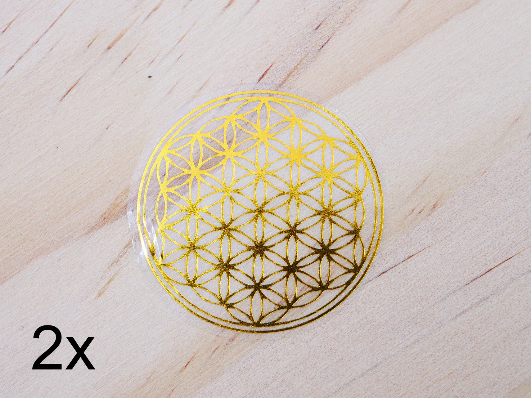 Deux autocollants fleur de vie doré avec fond transparent. Pour coller sur un téléphone ou sur l'objet de votre choix !2x ø 2,8 cm