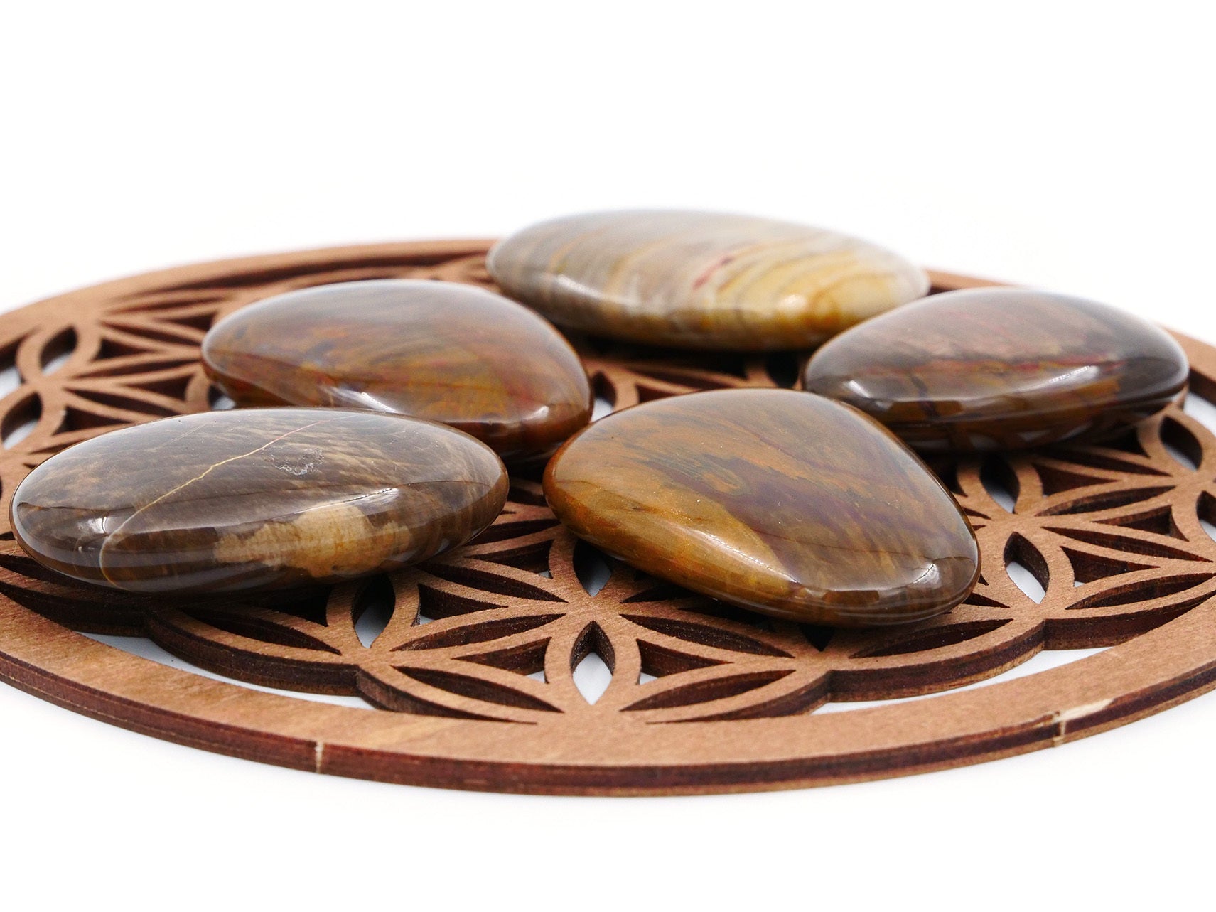 Le bois pétrifié aide à se relier à la terre, particulièrement utile pour ceux qui ont tendance à se perdre dans leurs pensées, à laisser leur esprit vagabonder ou à ne pas achever ce qu'ils ont commencé. Il est relaxant et aide à se centrer et se recueillir, incitant à vivre une vie simple où l'on dispose de temps pour l'oisiveté et la réflexion. Le bois pétrifié est une excellente aide à la méditation pour les débutants, offrant une base stable et ancrée. Sur le plan physique, le bois pétrifié stimule le métabolisme, apaise les nerfs et aide à perdre du poids, particulièrement lorsqu'une "mauvaise mise à la terre" a entraîné de l'obésité comme une tentative inconsciente de retrouver un contact avec le sol. Il est particulièrement utile contre la culotte de cheval et l'obésité du bas du corps. En aidant à se reconnecter avec la terre et à garder les pieds sur terre, le bois pétrifié apporte un soutien précieux pour équilibrer la vie quotidienne et favoriser un sentiment de stabilité et de bien-être.