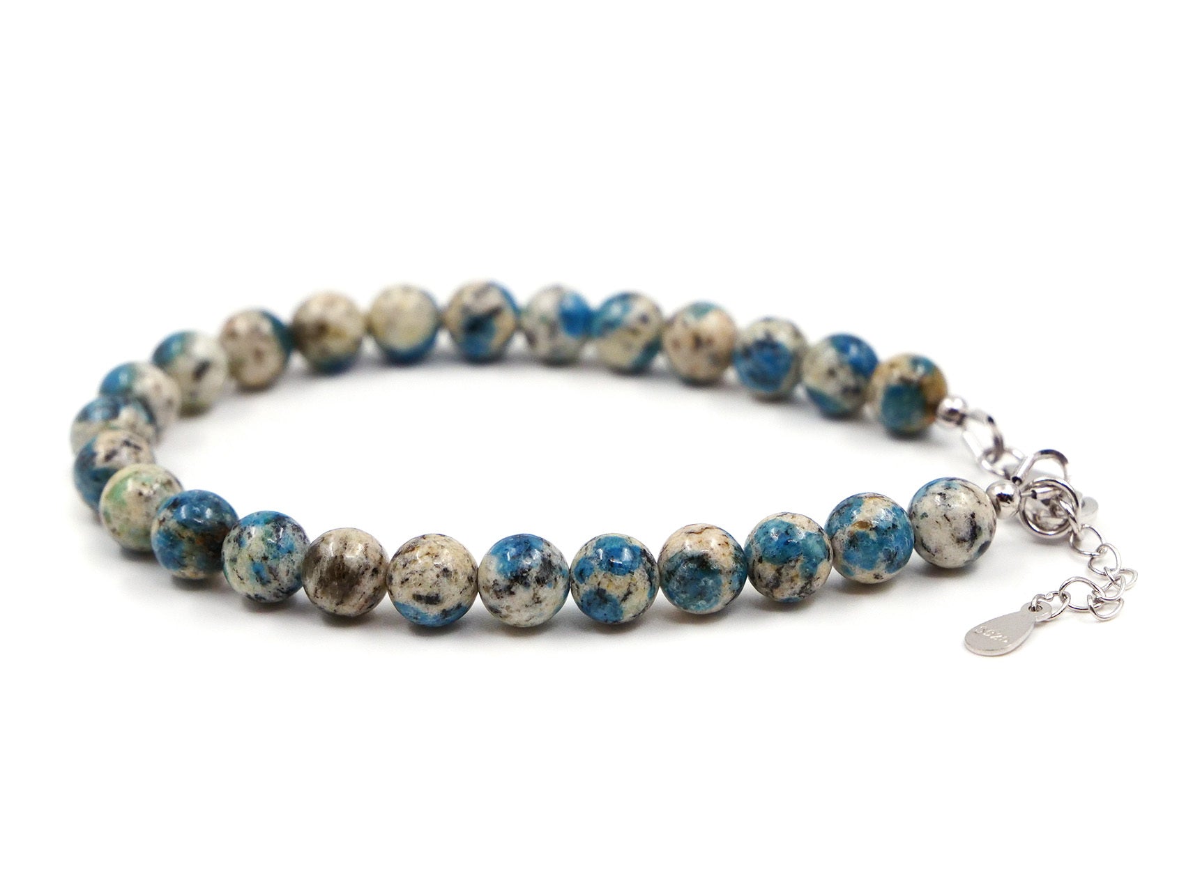 Bracelet en pierres naturelles avec chaînette et mousqueton en argent 925.