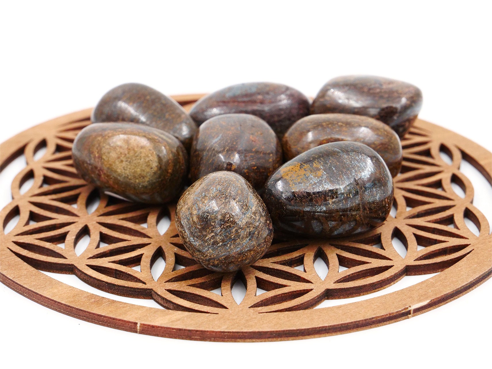 Grâce à la combinaison des minéraux fer et magnésium, la bronzite possède à la fois un effet stimulant et vivifiant (fer), tout en aidant à préserver un calme intérieur (magnésium). Cela permet de stimuler la récupération et la régénération même pendant les phases ardues de la vie, lorsque des engagements ou des circonstances extérieures rendent impossible une déconnexion complète. C'est une pierre de force et de récupération idéale pour les mères et les pères. La bronzite renforce le système nerveux et aide à faire face calmement aux conflits et aux situations extrêmes. Sur le plan physique, elle favorise le métabolisme du magnésium, ayant ainsi un effet spasmolytique et analgésique. En combinaison avec l'apatite, elle stimule la résistance et la dureté des os. En soutenant le système nerveux et en apportant une énergie stabilisante, la bronzite permet de naviguer les défis quotidiens avec sérénité et force intérieure.