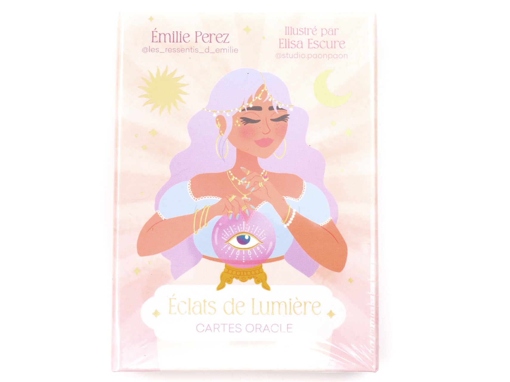 Une question ? Une réponse instantanée ! Dans ce coffret lumineux, tu découvriras 44 cartes magnifiquement illustrées qui te guideront dans tous les domaines de ta vie. Créé en canalisation, l'oracle Eclats de Lumière a pour vocation de développer ton intuition pour que tu puisses recevoir les messages inspirants de tes guides. Ainsi, grâce à tes amis de "là-haut", tu pourras te relier à tes émotions et trouver des solutions créatives aux défis que tu rencontres. Véritable allié, cet oracle divinatoire te prodiguera des conseils éclairants à chaque fois que tu en ressentiras le besoin. Ecoute ton coeur et laisse la magie de l'oracle Eclats de Lumière éclairer ta vie !