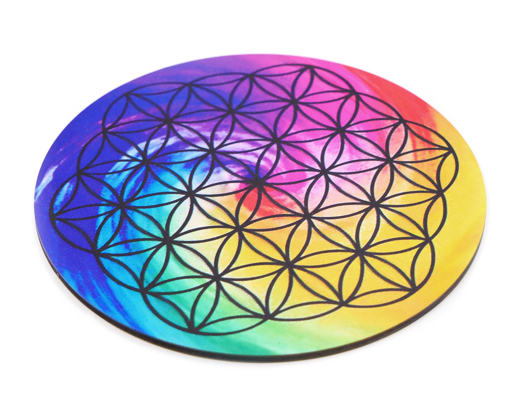 Cette Fleur de Vie en bois de 15 cm, ornée d'une impression arc-en-ciel, offre une esthétique simple et sobre. Idéale pour recharger les pierres, elle apporte une touche de sérénité et d'harmonie à tout espace.ø 15 cm