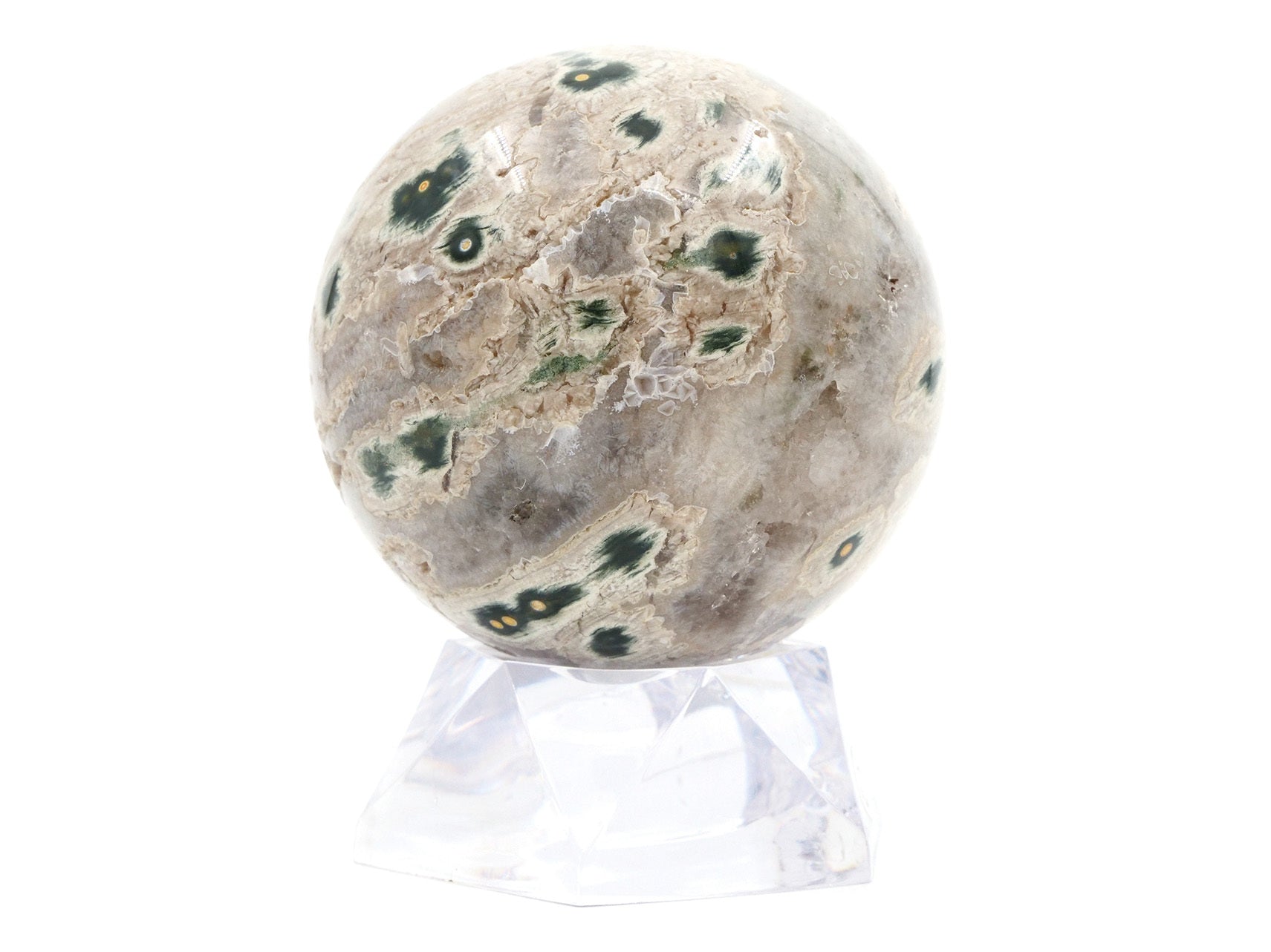 Magnifique boule polie en jaspe océanique.