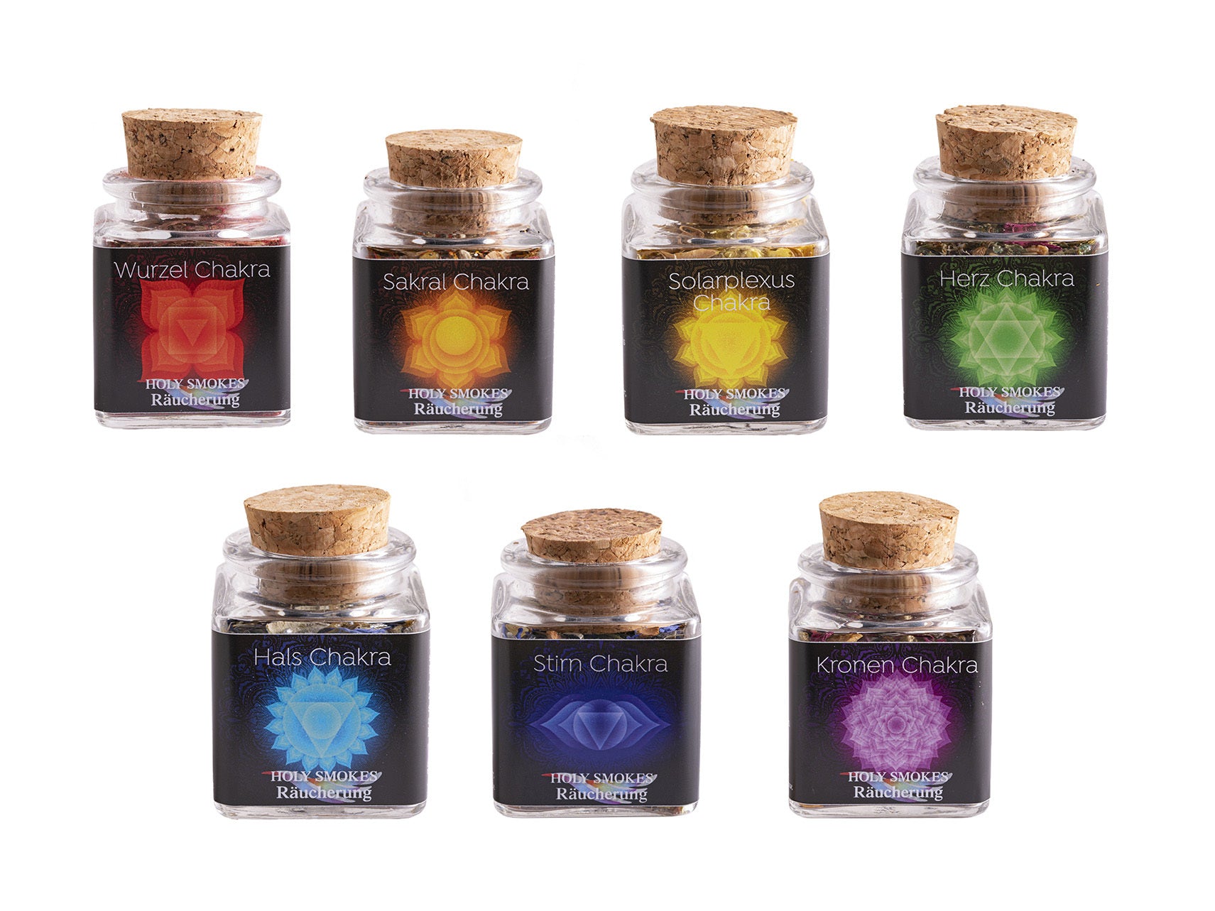 Les sept chakras sont des centres d'énergie dans notre corps qui condensent les vibrations de notre corps subtil et les expriment dans notre corps manifeste. Il existe des plantes utiles qui peuvent équilibrer et renforcer ces centres énergétiques.Notre encens pour chakras est combiné avec des plantes sélectionnées pour créer un effet d'équilibre et de renforcement sur chaque chakra.Contenu des petits pots 50 ml