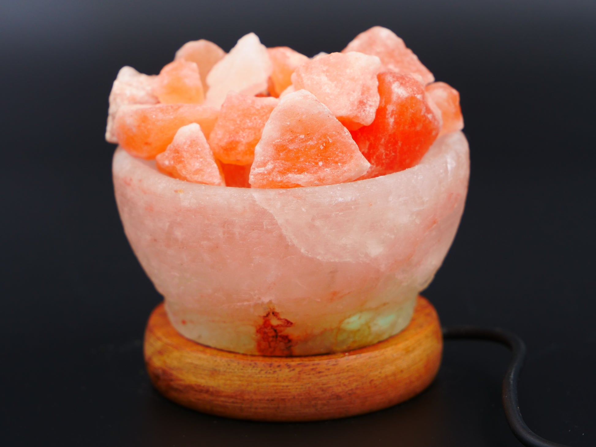 Dimensions et poids (approximatif)Diamètre 8 cm / hauteur 10 cm / 500-600gPetite lampe de sel de l'Himalaya composée d'un bol rempli de morceaux de sel avec éclairage LED qui change de couleur au fil du temps. Cette lampe est conçue pour émettre une lueur douce et apaisante.Alimentation par prise USB.
