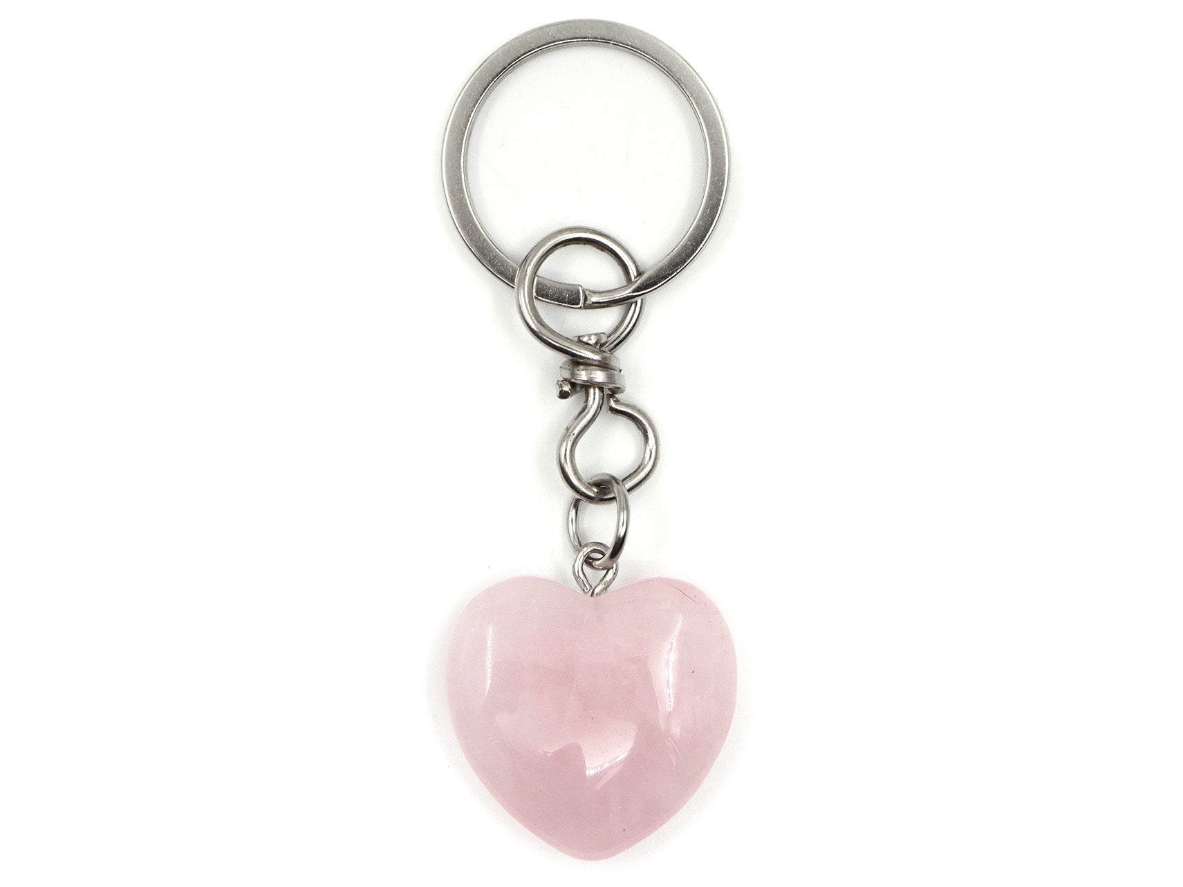 Porte-clés charmant en forme de cœur, fabriqué en quartz rose pour apporter élégance et sérénité à votre quotidien.