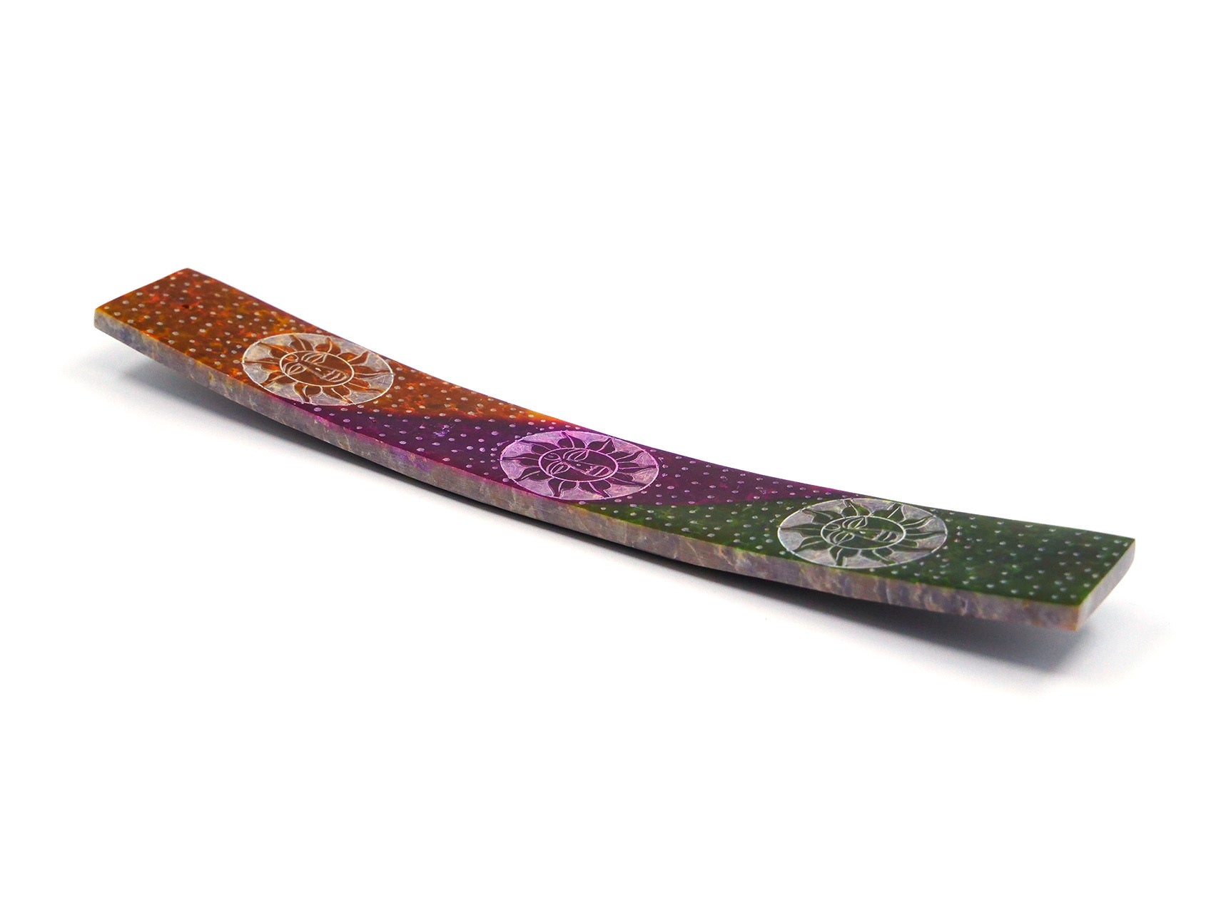 Dimensions : 26 x 3.5 cmAjoutez une touche de sérénité à votre espace de méditation avec ce porte-encens en stéatite. Sa surface est sculptée avec un design zen et est peinte de couleurs vibrantes.Ce porte-encens est doté d'un petit trou pour insérer facilement un bâtonnet d'encens. Une fois allumé, l'encens brûle en toute sécurité sur la surface de la stéatite, dégageant un parfum apaisant et relaxant.
