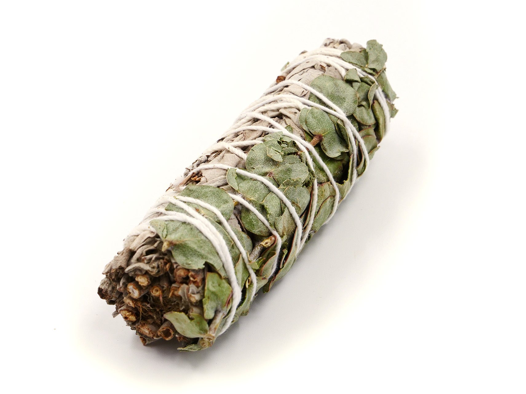 Longueur : 10 cmSauge blanche (Salvia Alpine) et eucalyptusDécouvrez ce fascinant mélange de sauge blanche et d'eucalyptus, conçu pour purifier et rééquilibrer votre environnement. La sauge blanche, qui trouve son origine dans l'ensoleillée Californie, est réputée pour être l'une des plantes les plus puissantes pour assainir et bénir les espaces, les êtres vivants ou les objets. Son parfum légèrement acidulé évoque la nature sauvage de la côte ouest. Elle est vénérée par les Amérindiens comme l'une des rares plantes à ne contenir que de l'énergie pure et positive, utilisée pour repousser le mal et favoriser une pensée claire. Elle symbolise l'ouest, le lieu des ancêtres vénérés et du coucher du soleil, la direction qui invite au calme spirituel du soir.L'eucalyptus, quant à lui, apporte une touche d'exotisme et de fraîcheur à ce mélange. Connue pour ses propriétés antibactériennes, antivirales et stimulantes, cette plante australienne aux feuilles parfumées ajoute une dimension de vitalité et d'énergie à notre bundle. Son parfum vivifiant aide à stimuler la clarté mentale, à favoriser la concentration et à libérer les énergies négatives.