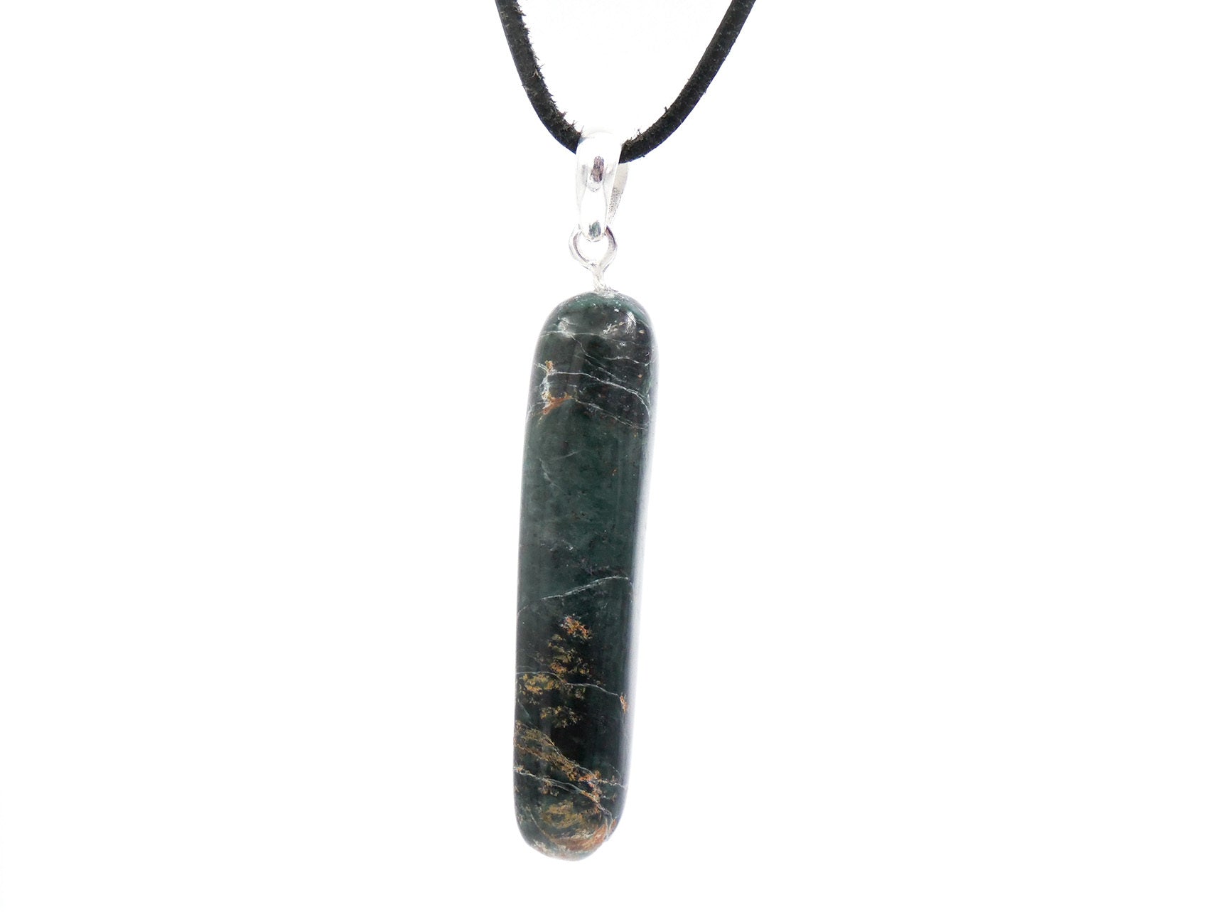 Pendentif en serpentine d'origine Suisse (VS).Bélière en argent 925.Taille : environ 4,5 x 1,2 cm