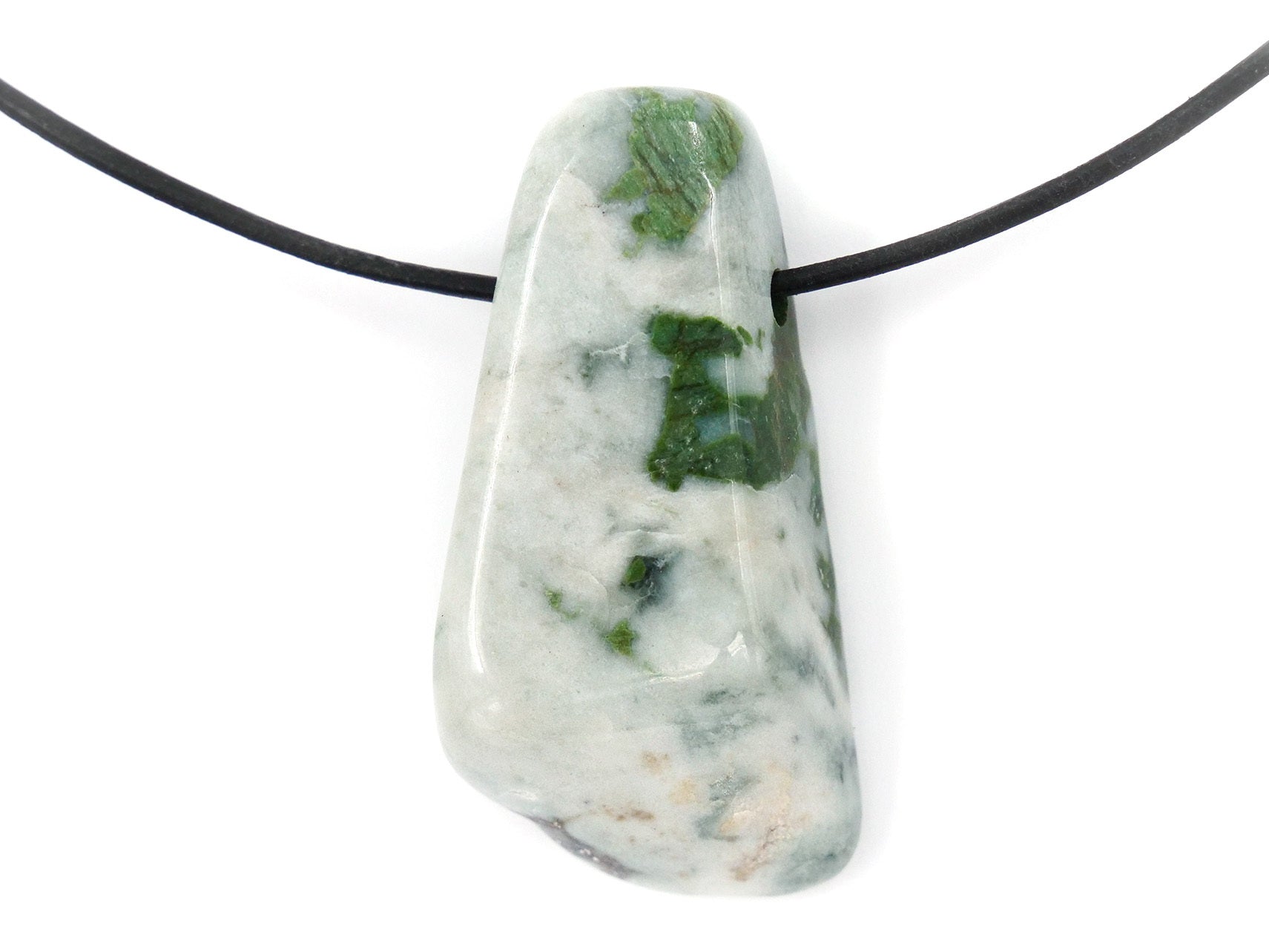 Pendentif en smaragdite d'origine Suisse (Saas-Almagell, VS). Taille : environ 4,5 x 2,5 cm